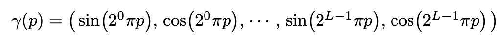 그래서 저자는 기존의 네트워크 $F_{\theta}$를 두 개의 함수 $F_{\theta}'$와 $\gamma$로 구성하여 만들었다. 여기서 $\gamma$는 $\mathbb{R}$을 $\mathbb{R}^{2L}$로 mapping 하는 함수이다. 개인적으로 이 부분을 SVM(Support Vector Machine)에서 커널 함수를 통해 저차원의 데이터를 고차원으로 변환하여 학습하는 것과 어느 정도 비슷한 맥락을 보인다고 이해했다.