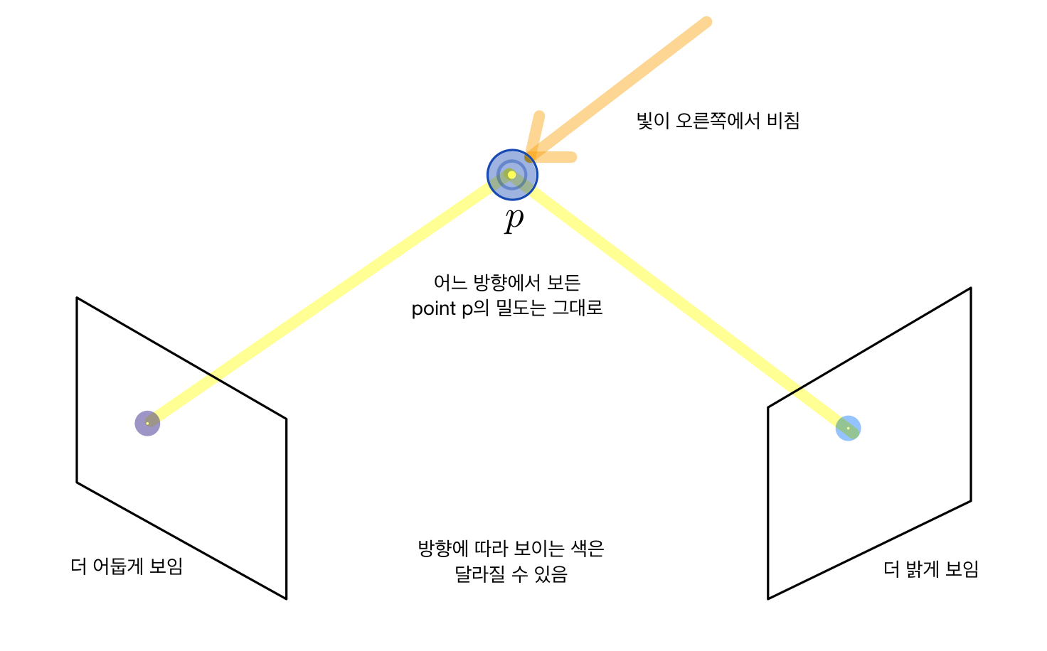 어떤 위치의 밀도(density)는 외부 또는 내부 환경이 변화하지 않는 한 그대로 유지된다. 그러니까 우리가 어떠한 지점을 남동쪽에서 바라보는지 아니면 남서쪽에서 바라보는지 그 방향에 따라 해당 지점의 density는 변하지 않는다.