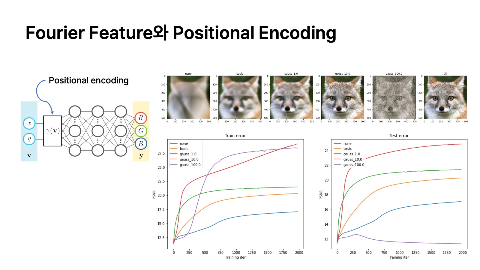 많은 실험 결과에서 Fourier feature로 positional encoding을 적용했을 때 모델이 high frequency의 데이터에 좀 더 집중하여 학습할 수 있음을 알려준다.