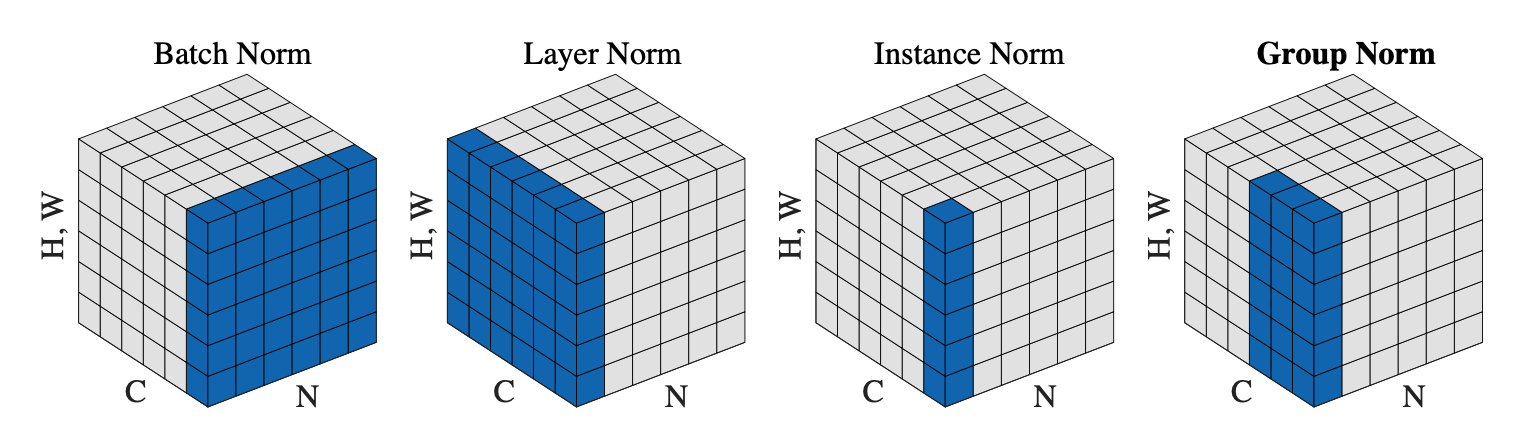 딥 러닝에서는 batch norm, layer norm, instance norm, group norm 등 다양한 normalization 기법이 존재한다. 기본적으로 여러 normalization 기법은 주어진 다수의 sample에 관해 평균이 0이고 분산이 1인 분포로 만들어준 후, 우리가 원하는 평균과 분산을 주입할 수 있도록 만드는 선형변환을 행한다.